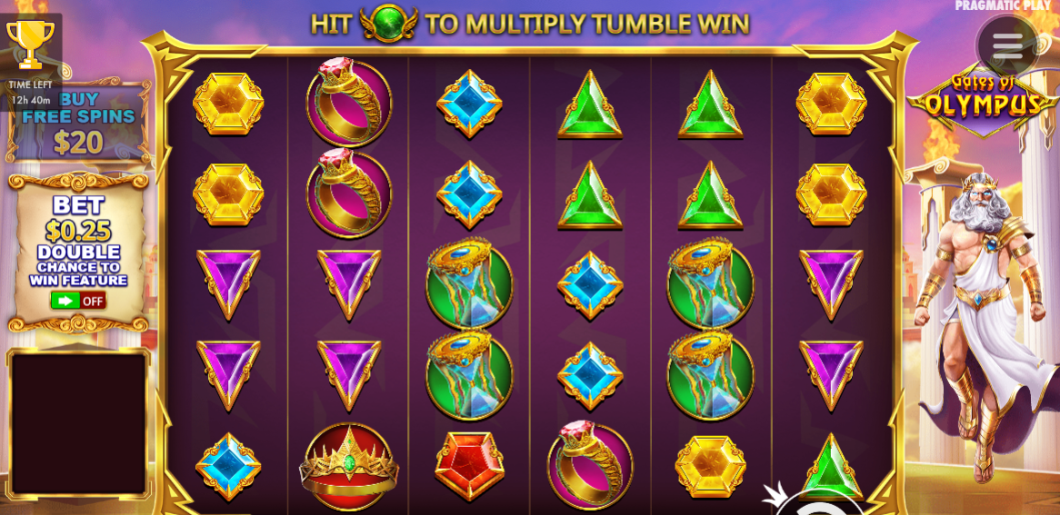 To start playing Gates of Olympus, you can adjust your bet size using the stake buttons at the bottom of the reels. The minimum bet per spin is 0.20, while the maximum bet is 100.00. This flexibility allows players of all budgets to enjoy the game. Purchasing a Bonus Buy directly costs 100 times the base game bet per spin. Players also have the ability to double the chances of getting into a Bonus Game by paying 25% extra on each base game bet spin. The theoretical Return to Player is 96.5% for all methods of game play.
