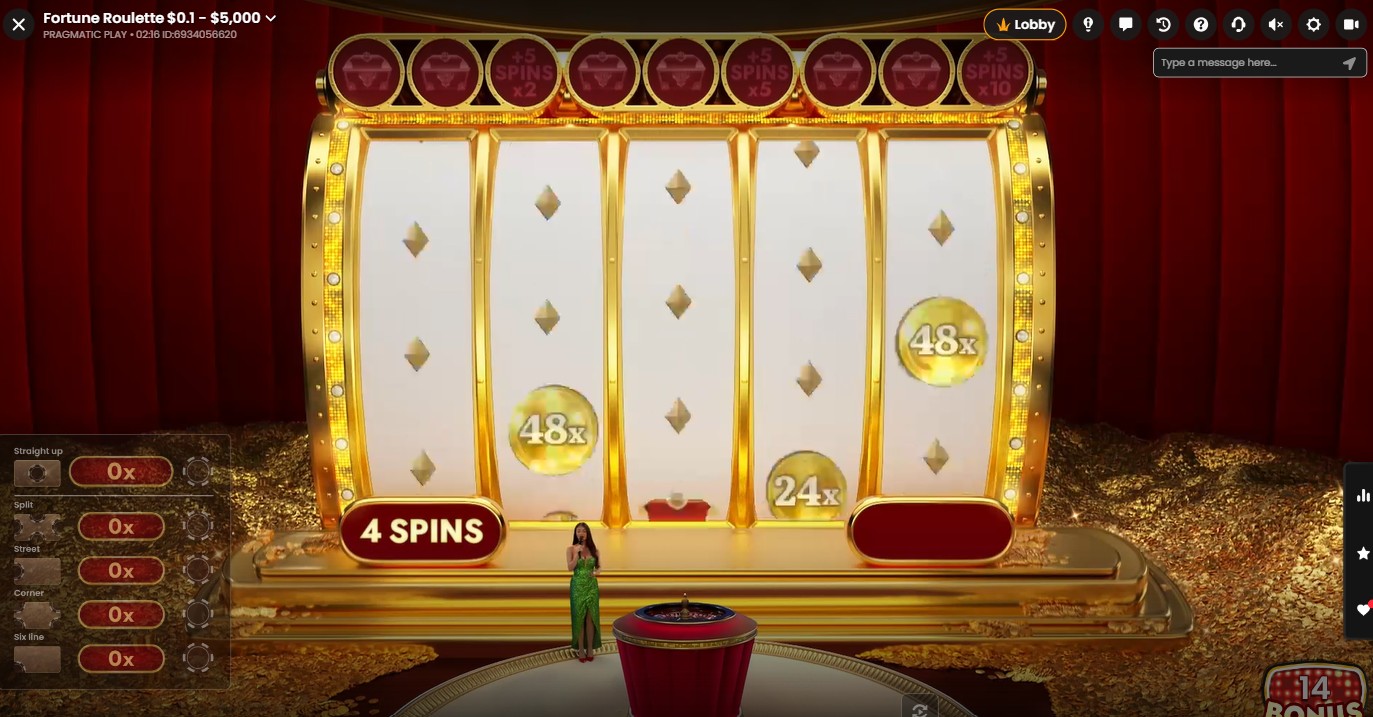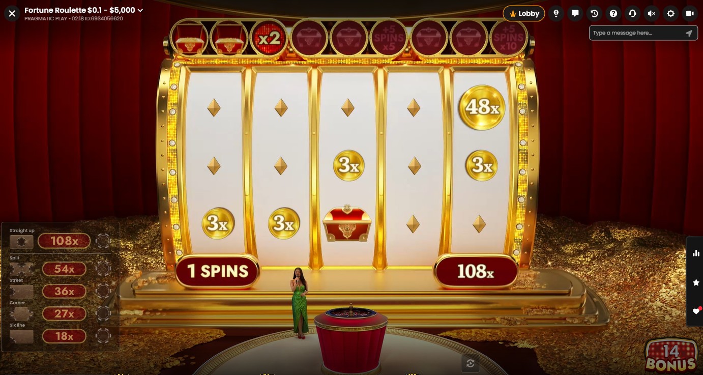 Fortune Roulette by Pragmatic Play Live offers a fresh and innovative twist on a classic game. It not only preserves the core excitement of Roulette with its familiar numbers and bets but also introduces rewarding special features that enhance the winnings on inside bets. This is particularly noteworthy with how even inside bets that cover multiple numbers can now benefit from multipliers, Chest collections, and Bonus game triggers.