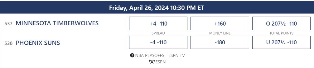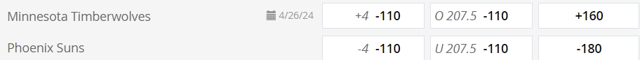 Minnesota Timberwolves vs. Phoenix Suns in the NBA has radically different lines across 5 different sportsbooks.
