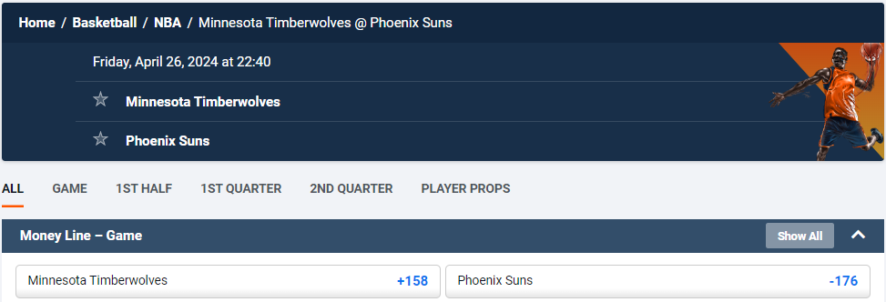 Think the Timberwolves going to win this game outright, but don’t want to bet on the spread. You shouldn’t place that bet with Sportsbook E. You are best off with Sportsbook D.